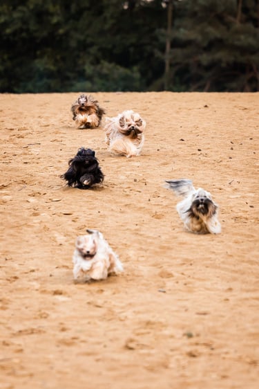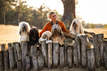 Later begon mama met fokken, en in 1991 veranderde ons leven voorgoed. Uit medelijden namen we twee Lhasa Apso's in huis, zonder te weten wat voor bijzondere honden we mee naar huis hadden genomen. Het waren een reu en een teef, beiden ongeveer twee jaar oud en mét stamboom. Pas later ontdekten we dat de reu uit een uitstekende Engelse bloedlijn kwam en ook de teef een prachtige afstamming had. Dat was het begin van mijn avontuur met de Lhasa Apso, nu al meer dan dertig jaar geleden.